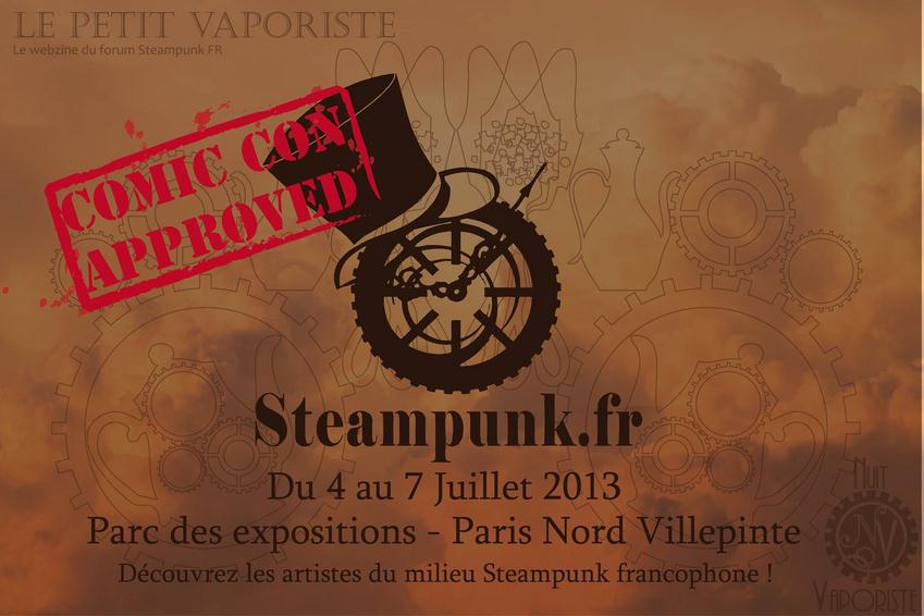 |  Retrouvez nous au Comic Con, stand DI 131 |  Venez découvrir ou redécouvrir des artistes du milieu Steampunk francophone ! Illustration, créations textiles, graphiques, plastiques et scéniques, la scène Steampunk française vous fera voyager durant les quatre jours de la Comic Con !
