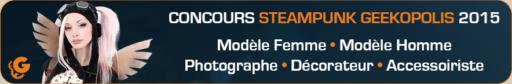 Geekopolis 2015 | Cette année encore, steampunk.fr est partenaire de geekopolis. La saison 3 fait la part belle aux génis du mal et nous propose d'explorer le coté obscur des univers geeks. Ce festival parisien vise à représenter nos univers au travers de 5 quartiers : Avalon, Little Tokyo, Metropolis, Teklab et Nautilus.
