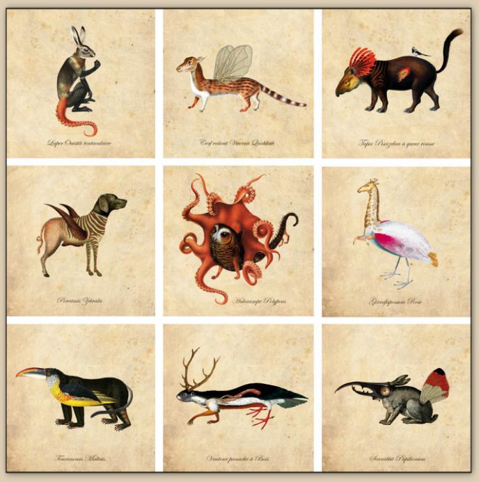 Graphiste de profession et grande collectionneuse de gravures, planches naturalistes et peintures anciennes, elle aime à donner une seconde vie à ces images par des collages numériques. Son imagination se plait a créer un univers onirique et ancien, poétique et surréaliste.