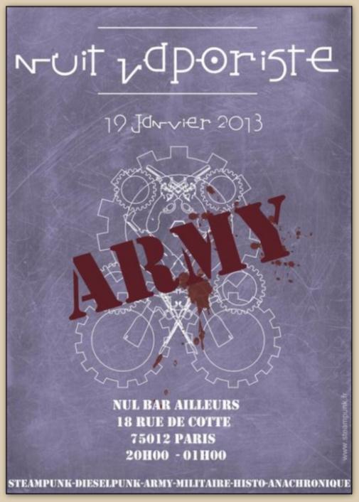 |  19 janvier 2012 : Nuit Vaporiste IV " Army !" |  Alors que l'Aéronef de la Nuit Vaporiste vient tout juste de s'envoler de Paris, elle y redescend dans quelques semaines pour une nouvelle soirée de folie !